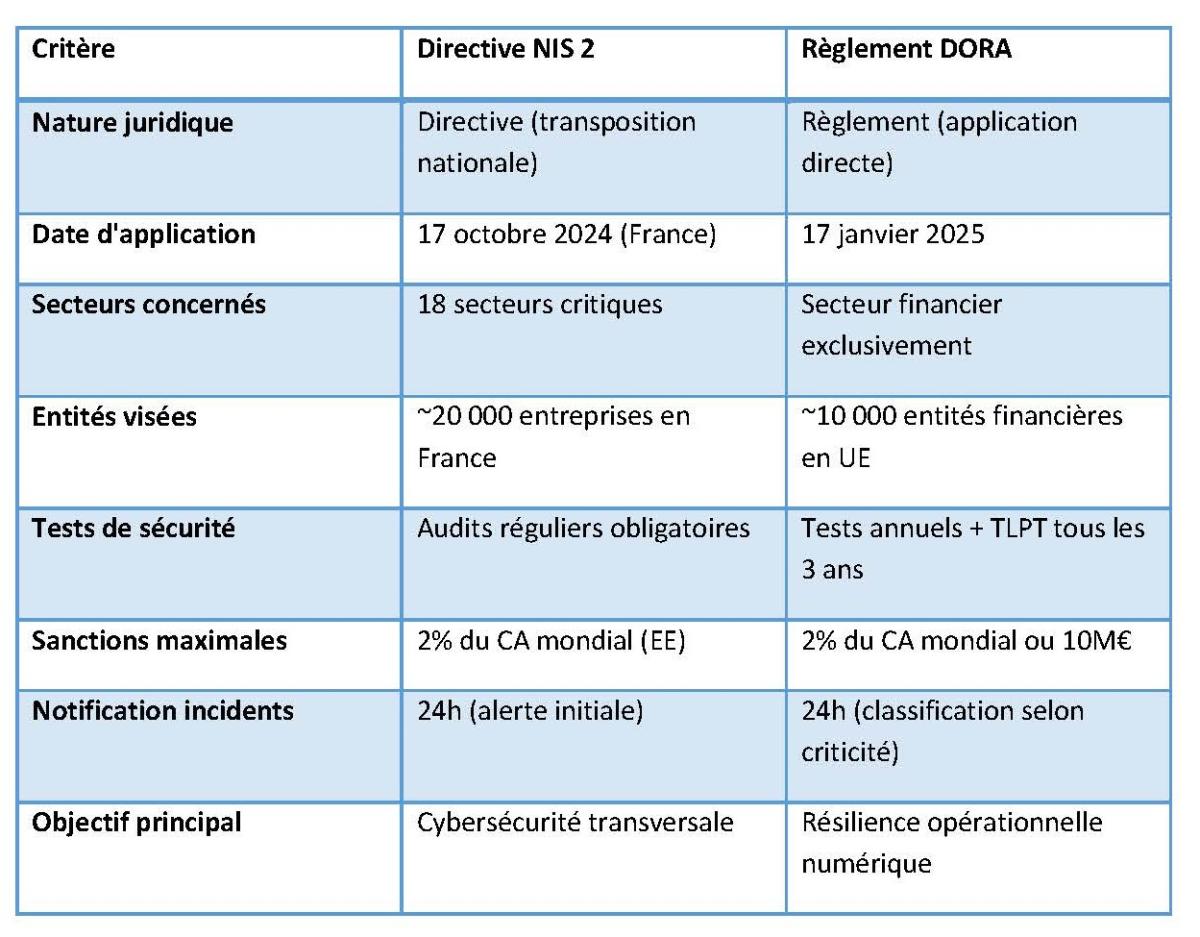 - Secteur financier NON couvert par DORA → Application de NIS 2